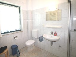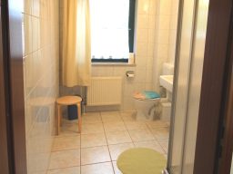 Wohnung 6 befindet sich im Obergeschoss und verfügt über 1 Schlafzimmer mit Doppelbett, einen Wohnraum mit TV-Ecke, Küchenzeile, Essbereich und ein Duschbad, welches vom Wohnzimmer aus betreten wird.