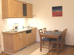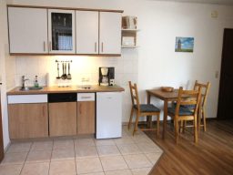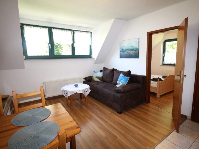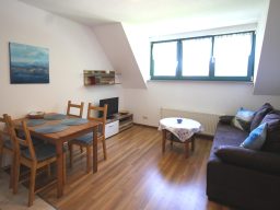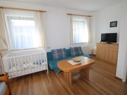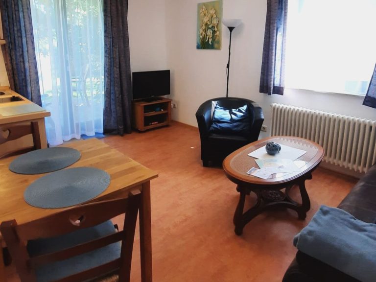 Wohnung 1 befindet sich im Erdgeschoss. Im gemütlichen Wohnzimmer mit möglicher Aufbettung für 2 Personen finden Sie eine Küchenzeile und 1 Sitzecke mit Fernseher.