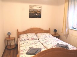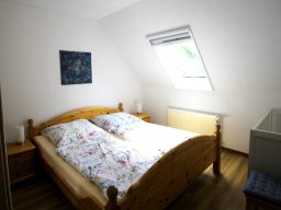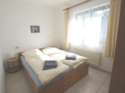 Mit 2 Aufbettungen kann Wohnung 4 bis zu 6 Personen einen gemütlichen Anlaufpunkt für einen erholsamen Ostseeurlaub bieten. Im größeren Schlafzimmer ist ein Babybett vorhanden.