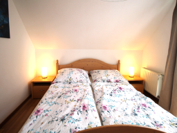 Im separatem Schlafzimmer finden 2 Personen Platz (Bett 160 x 200 cm, nur von einer Seite begehbar), eine Aufbettung im Wohnzimmer ist möglich.